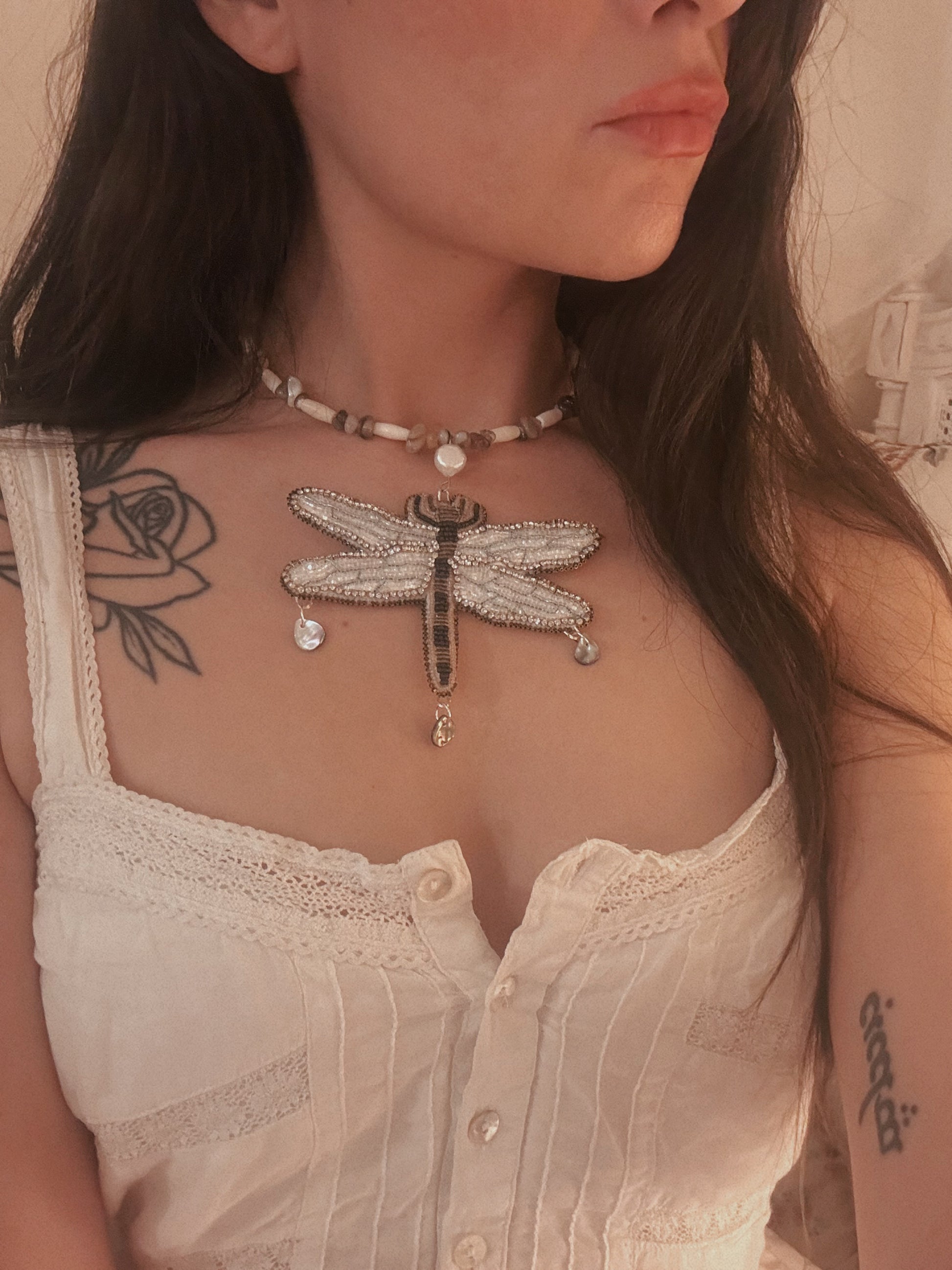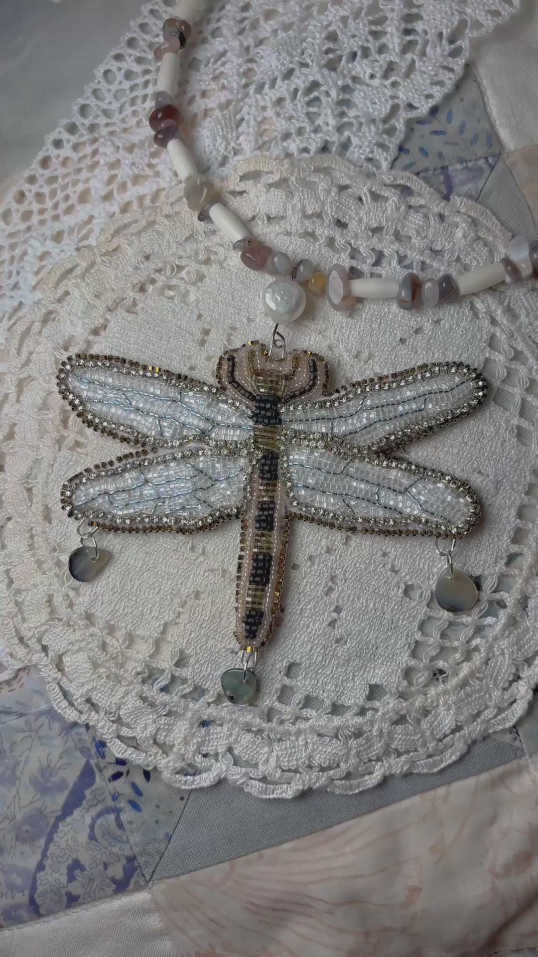 This beaded dragonfly necklace is the most beautifully sparkling piece I’ve made this year. The wings were a true labour of love using my own method for beading realistic dragonfly wings. The tri-cut beads really create the most gorgeous sparkle in the light.
